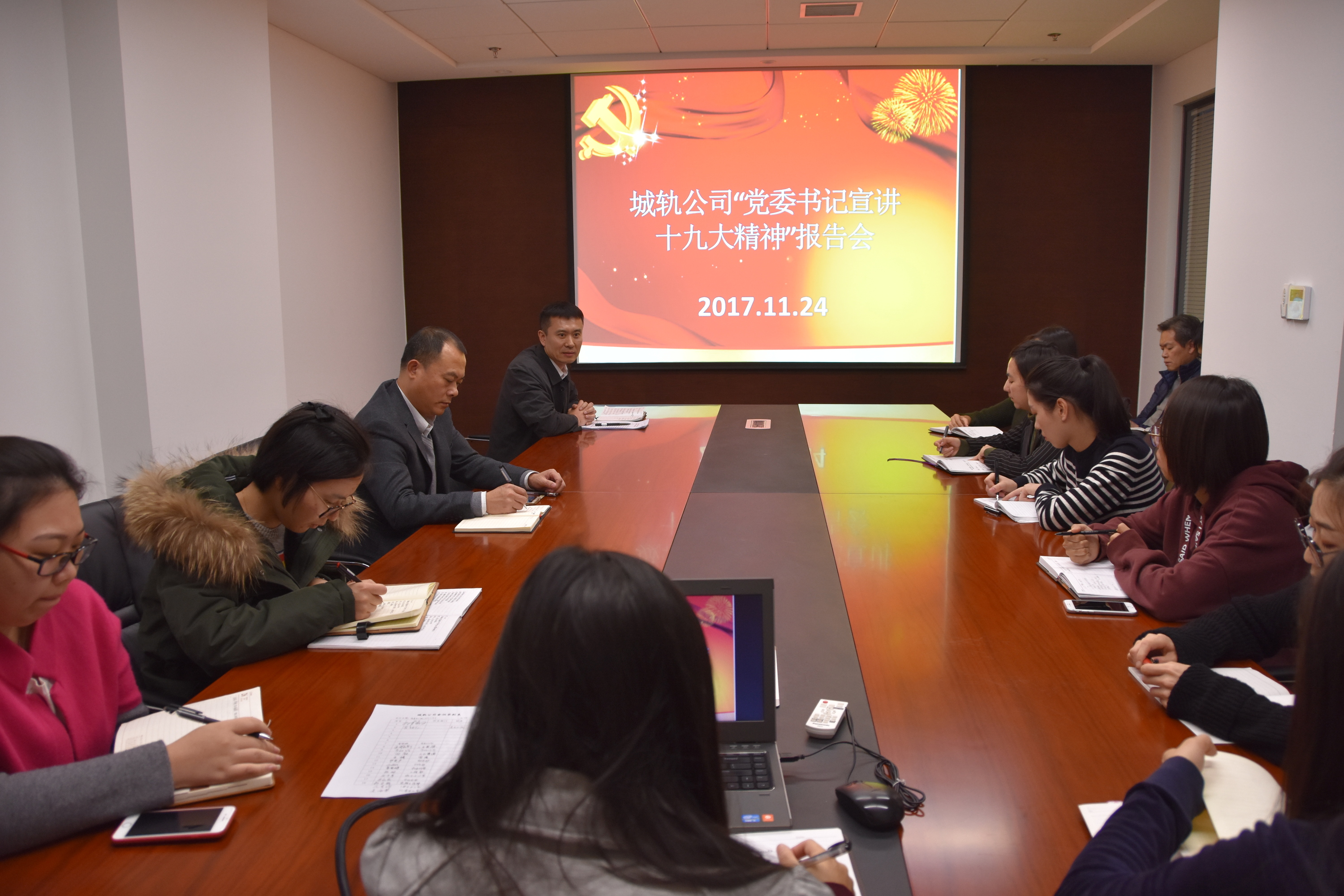 11月25日,北京城市軌道工程公司召開(kāi)黨委中心組(擴(kuò)大)學(xué)習(xí)會(huì),黨委書(shū)記郭帆圍繞《深入學(xué)習(xí)領(lǐng)會(huì)黨的十九大精神 在新時(shí)代努力成為優(yōu)秀施工企業(yè)》的主題,為全體與會(huì)人員上了一堂生動(dòng)的專題黨課,進(jìn)一步掀起了學(xué)習(xí)宣傳貫徹黨的十九大精神熱潮。